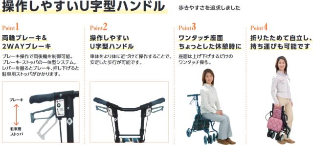 ・ハンドル高さ79〜85cm・操作しやすいU字ハンドル・手元2WAYブレーキシステム
