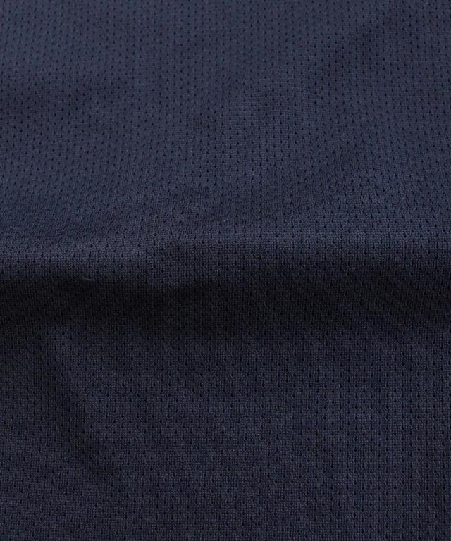 襟元はスッキリトしたスタンドネック、袖&裾はリブライン入り。