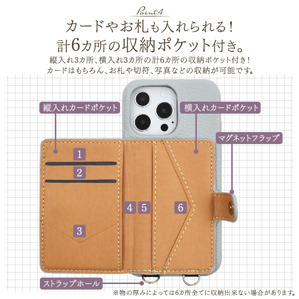 ※本製品はマグネットを使用しておりますのでクレジットカードなどの磁気カードの収納は避け、カードの注意事項をよくご確認の上ご使用ください。読み取り等ができなくなる恐れがあります。※本製品に収納さsれた、カードのデータ等が喪失された場合におきましても、当社では一切保証致しかねます。※長時間接触していたり、強い力で擦れるとスマートフォンに色移りする場合がございます。※本製品は強い衝撃からスマートフォンを保護することは出来ません。