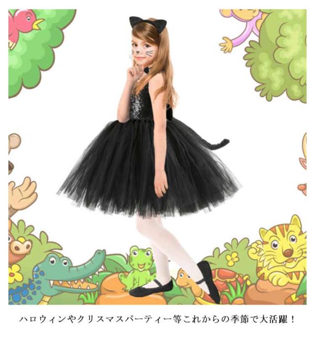子どもコスチューム キッズ ジャンパースカート 黒猫 コスチューム チュチュワンピース ハロウィン衣装 女の子 コスプレ衣装 可愛い 変装 仮装 猫耳 ハロウィンパーティー イベント 舞台劇 舞台衣装 学園祭 ワンピース