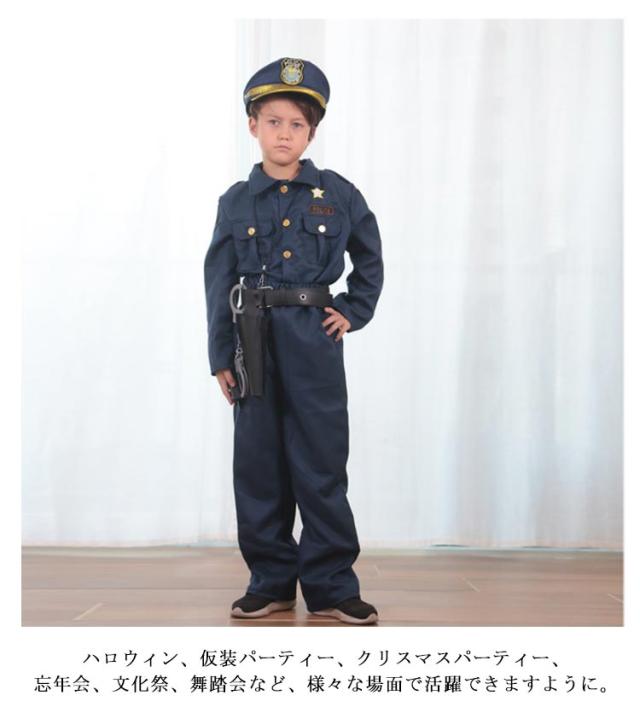 | かっこいい警察官のコスチュームで、ハロウィンの人気定番の衣装となっております。 7点セット いつの時代も、小さな子に人気な職業は見た目がカッコイイ!ユニフォームや道具などの”見た目”に特徴がある仕事です。 その”見た目”に拘った衣装を身に着けた途端にテンションを上げてくれます 子供たちが憧れの警察官なりきのコスチュームです。イベント時に目立つこと間違いなしです。 ハロウィン、仮装パーティー、クリスマスパーティー、忘年会、文化祭、舞踏会など、様々な場面で活躍できますように。 | |