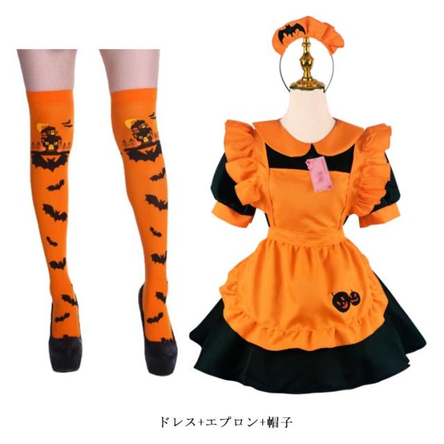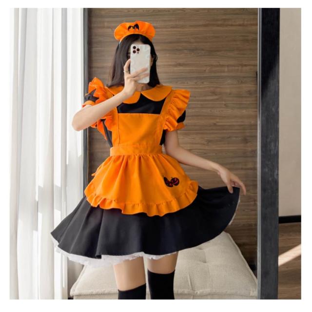 かぼちゃ メイド服 ハロウイン コスプレ 衣装 コスチューム メイド レディース ハロウィーン コスチューム 大人 仮装 膝丈 ロリータワンピース 可愛い 変身仮装 メイドワンピース ティアードドレス 学園祭 文化祭 イベント cosplay Halloween