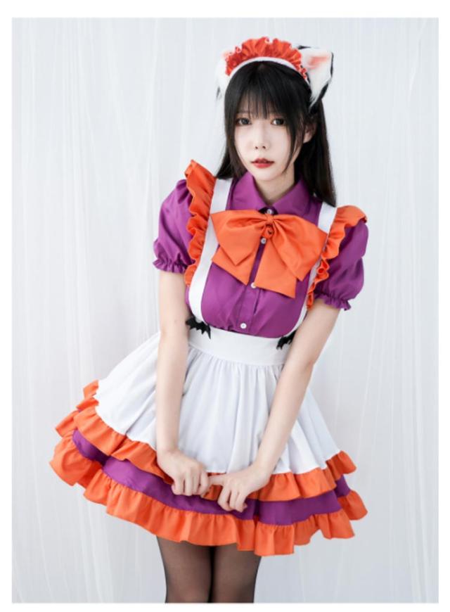 かぼちゃ ハロウィン 女性 可愛い レディース 大人 コスプレ メイド服 メイド 仮装 衣装 セクシー コスチューム ハロウィン仮装 パーティー イベント ステージ衣装 学園祭 マンガ喫茶 キュート アリス ロリータ ドレス ウェイトレス エプロン Halloween cosplay