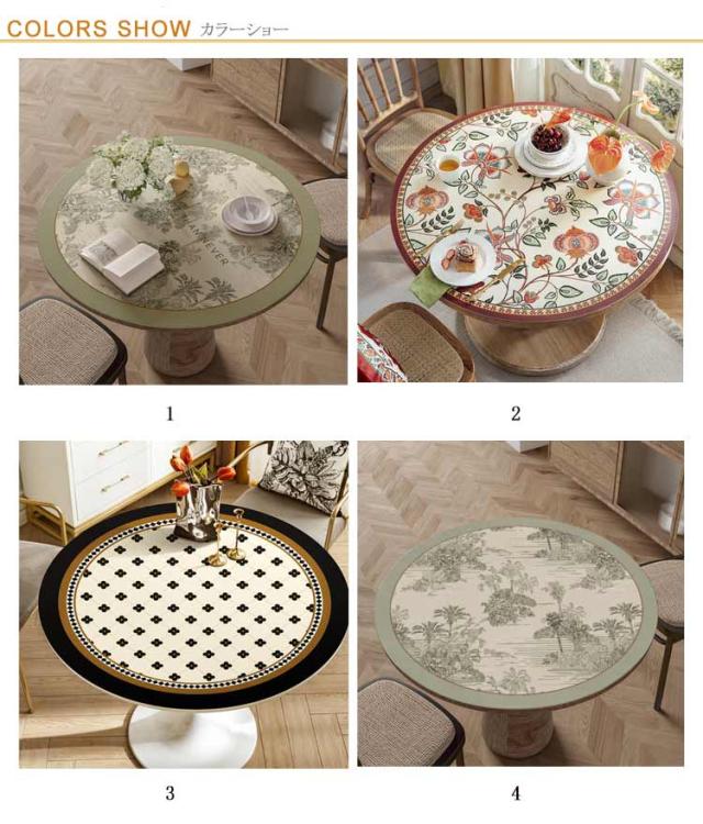 テーブルクロス テーブルマット 円形 丸形 PUレザー 撥水 防水 防油 耐熱 デスクマット 食卓カバー テーブルカバー 汚れ防止 キズ防止 花柄 総柄 幾何柄 北欧風 エレガント レトロ シンプル アジアン モダン 家庭用 業務用 ギフト プチギフト