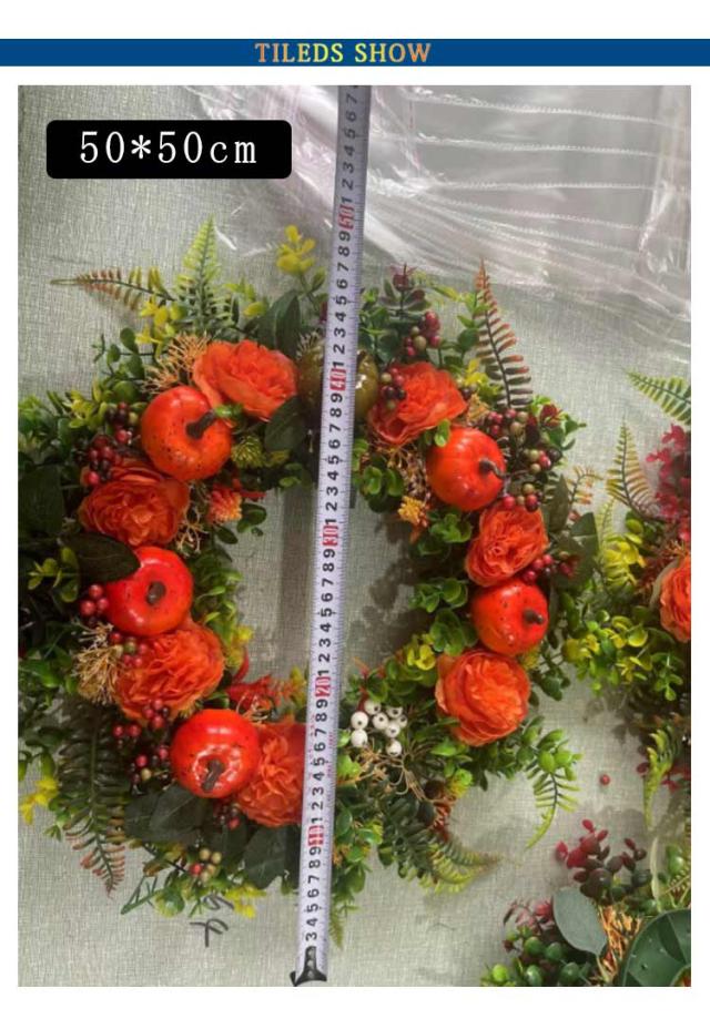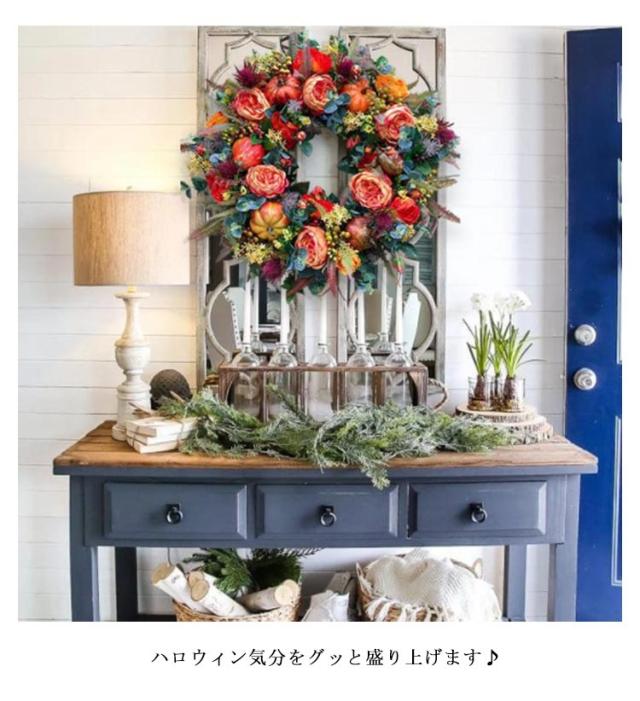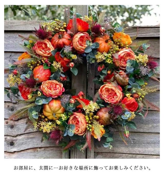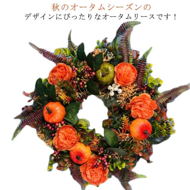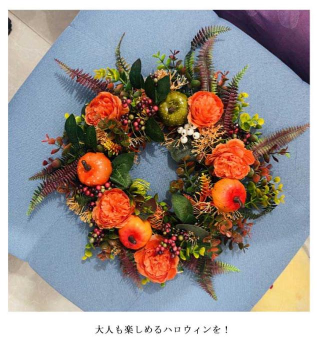カボチャ ハロウィン リース 50*50cm 大きい パンプキン 玄関 部屋 北欧 装飾 飾り お家ハロウィン 秋 ナチュラル ハロウィンカラー オレンジ インテリア オータムリース 上品 高級 豪華 おしゃれ かわいい ドア 壁掛け