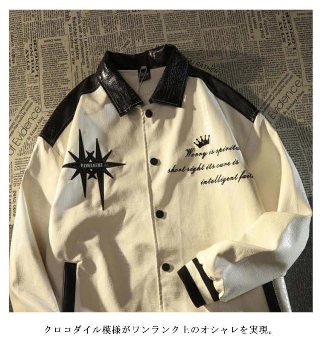| 遊び心地をくすぐる革ジャンパー。 しなやかで柔らかい上品なフェイクレザーを使用し、素敵な配色デザインがスタイリングアップ。 クロコダイル模様がワンランク上のオシャレを実現。 トレンドのゆるシルエットがスタイリッシュに着こなせる今風スタイルに。 レディースもメンズもよく似合うユニセックスな設計、夫婦リングコーデにもお勧めです。 | |