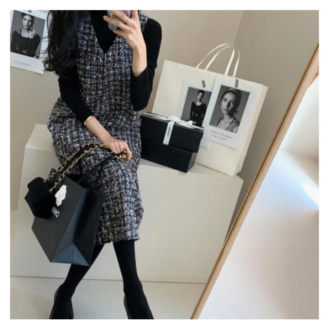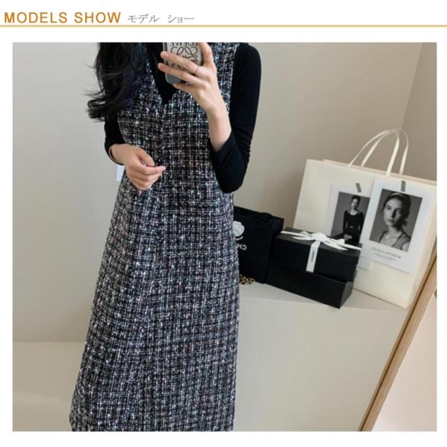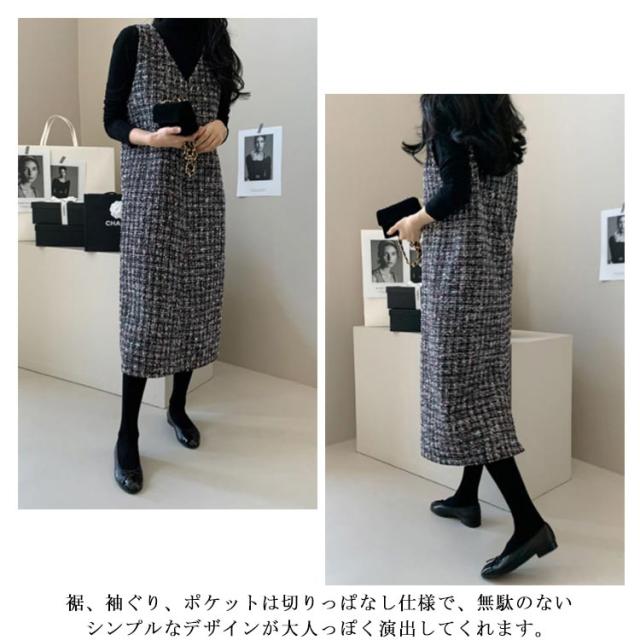 送料無料 ワンピース 冬 フォーマル 結婚式 ワンピース ロングワンピース 深め きれいめ vネック 春秋 着痩せ ジャンパースカート 無地 シンプル ゆったり カジュアル 大人 膝丈 通学 通勤 重ね着 レイヤード ジャンスカート