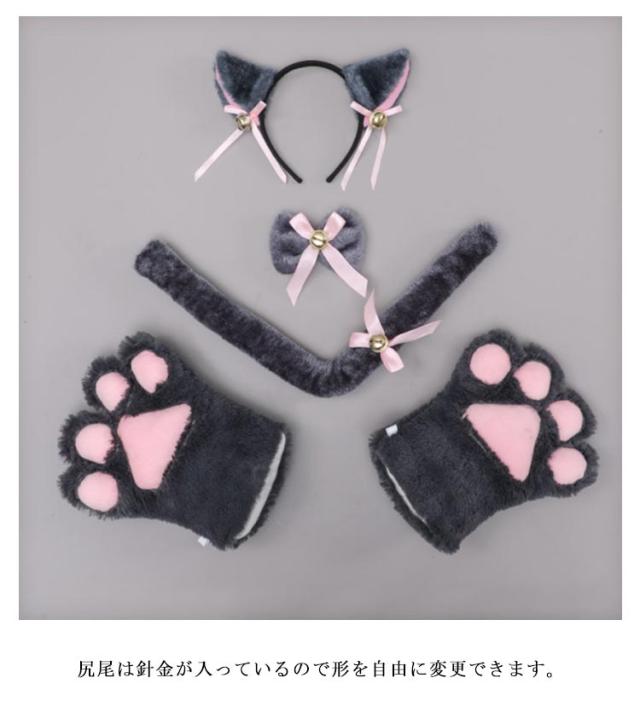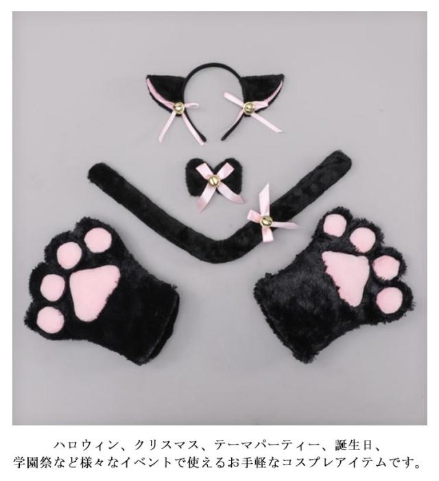 猫コスプレ 猫耳 カチューシャ 肉球手袋 しっぽ 首輪 4点セット 萌え萌え ハロウィン コスプレ ねこみみ 文化祭 仮装 鈴 セクシー 可愛い 舞台 衣装