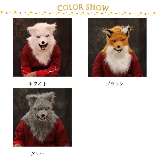 口が動く ふわふわファー付き 動物マスク なりきりマスク 被り物 キツネ アニマルマスク 毛並質感 オオカミ 犬 お面 仮装 変装 ハロウィン パーティーグッズ 面白い
