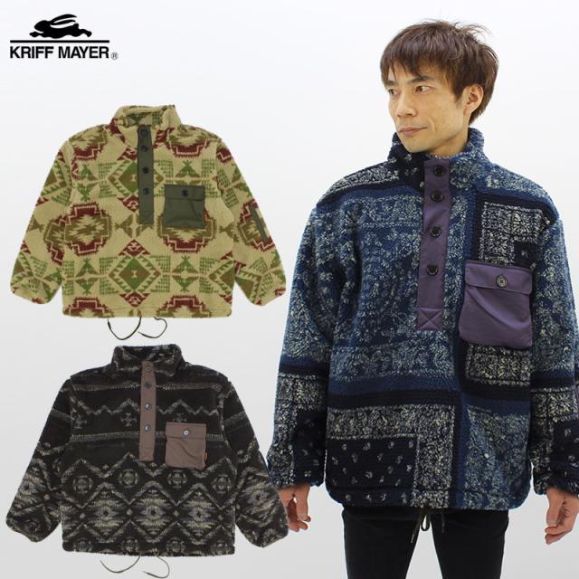 クリフメイヤー KRIFF MAYER 柄ボア キャンパー トップ メンズ アウター フリース 2225108