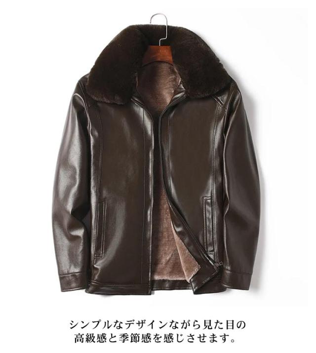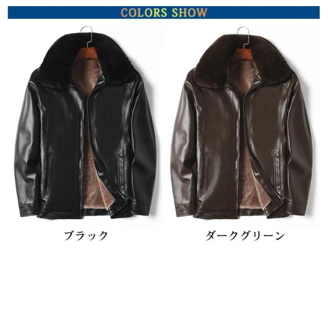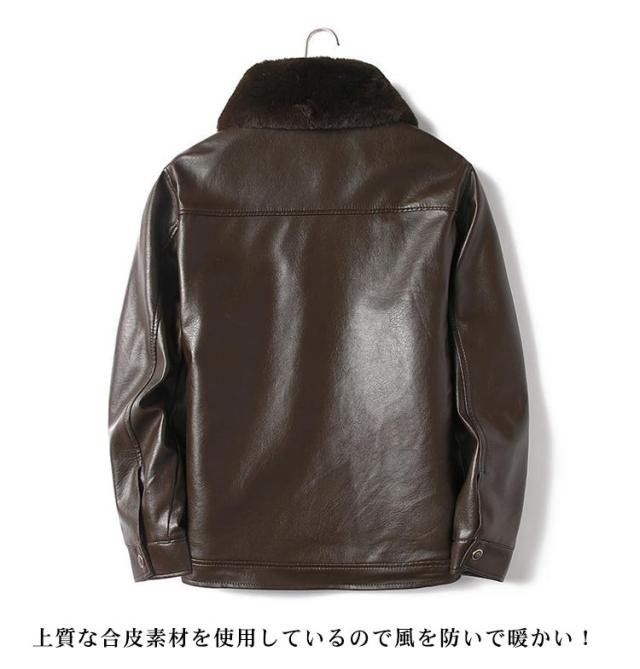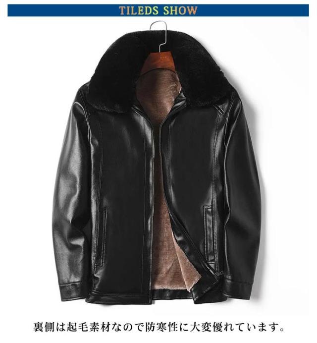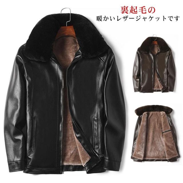 レザージャケット メンズ 裏起毛 厚手 秋冬 アウター 革ジャン 皮ジャン ライダースジャケット ブルゾン ムートン襟 大きいサイズ ジップアップ フェイクレザー 黒 防寒 ブラック カジュアル 裏ボア 送料無料