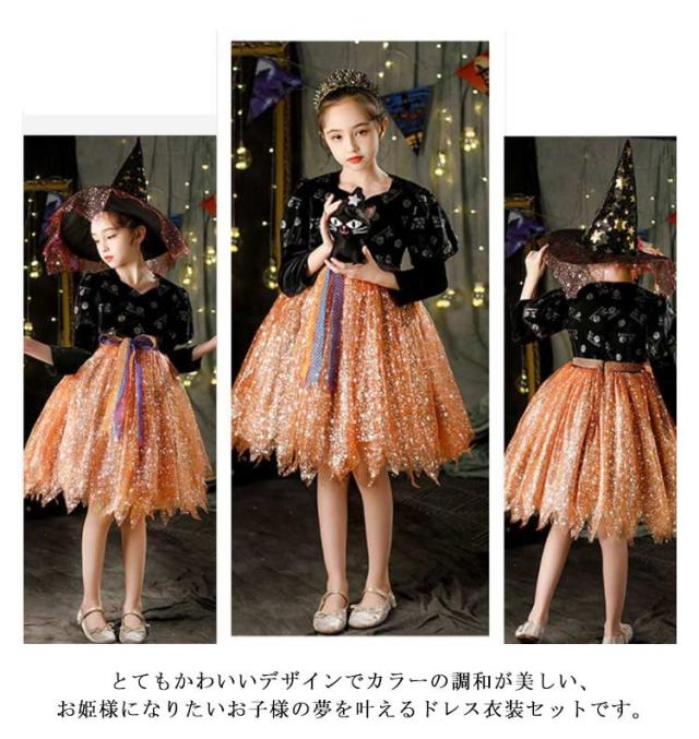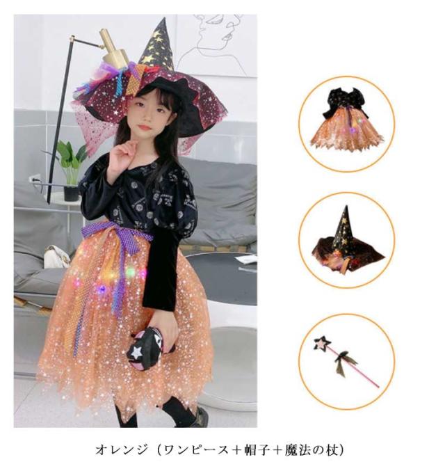 ハロウィン コスプレ 衣装 子供 仮装 魔女 女の子 ドレス ワンピース 変身 キッズ お姫様 プリンセス 帽子 キラキラ 子ども 可愛い 簡単 パーティー イベント 演出服 コスチューム 魔法使い 送料無料