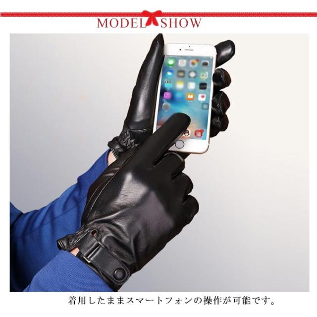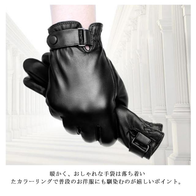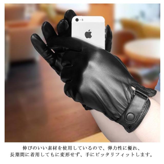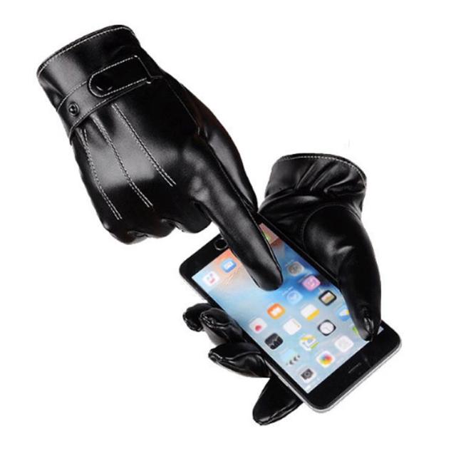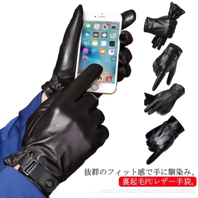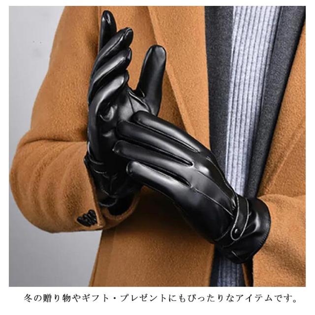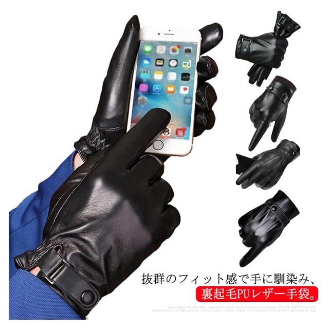 【送料無料】手袋 グローブ メンズ PU革 裏起毛 5本指 スマホ対応 タッチパネル リブ PUレザー 紳士 通勤 通学 学生 男子 自転車 バイク 防寒 保温 防風 撥水 防水 裏フリース 暖かい あたっか 無地 柔らかい