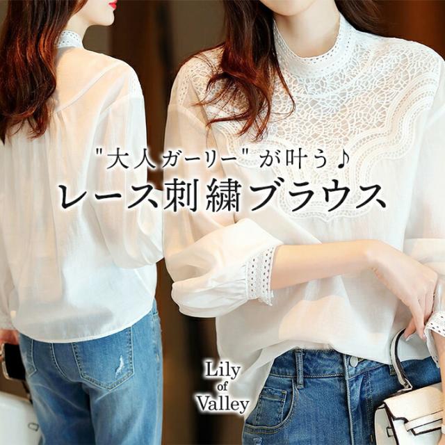 ・大人ガーリーな着こなしが叶う ハイネック カットワーク レース 刺繍 ブラウス
