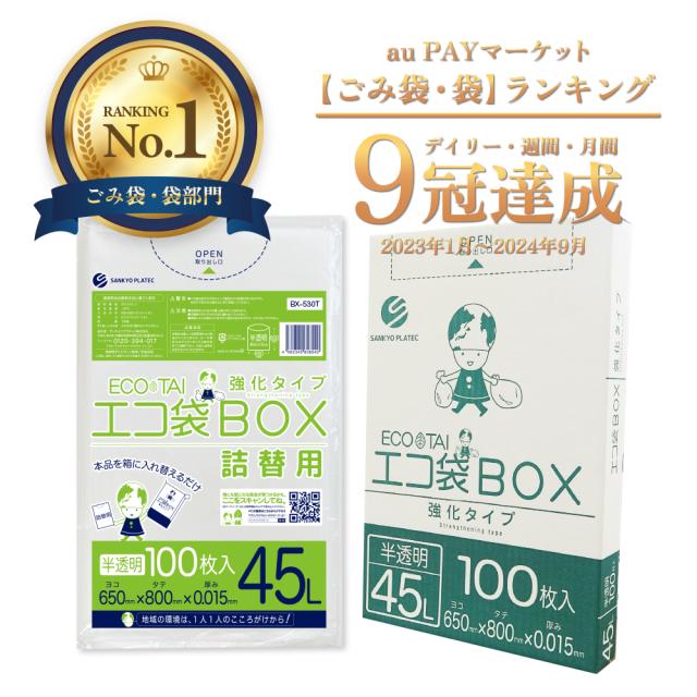 ポリ袋 ゴミ袋 箱タイプ 45リットル 薄手 半透明 65x80cm 0.015mm厚 1小箱(100枚)+詰替用(100枚) BX-530kt ごみ袋 45l ナチュラル 送料無料 サンキョウプラテック