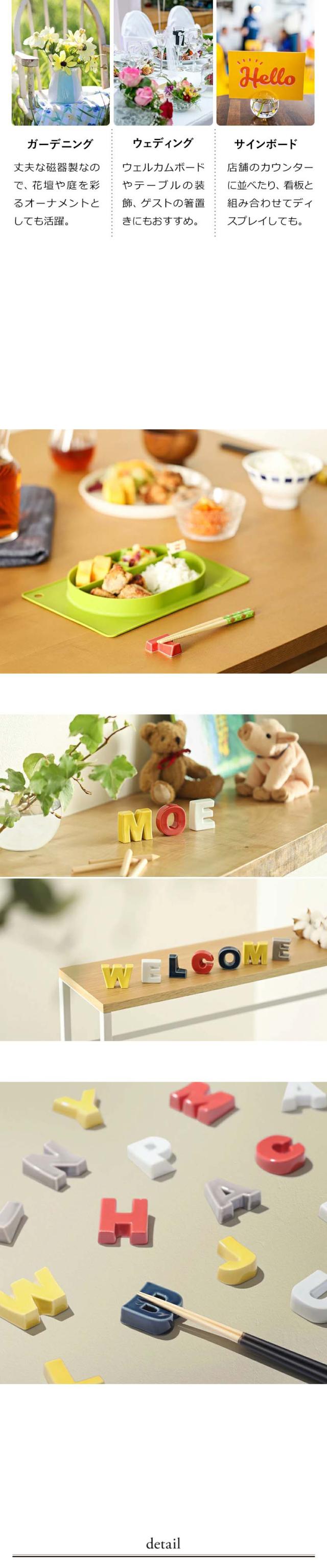 アルファベット全26文字、各5色展開のバリエーション豊かな波佐見焼の箸置き。スプーンやフォークも置けて、和洋食器どちらにも相性抜群。自立するので、空間を彩るオブジェとしても◎。