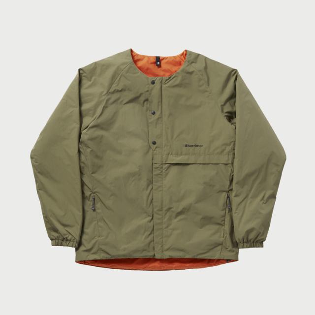 定番の中綿ジャケット〈gust crew〉をリバーシブル仕様に。表地にはシワになりにくいSOLOTEX素材、中綿はFREUDENBERG社のGRS認証リサイクル素材COMFORTEMPを採用。 チェストポケットへ収納可能なパッカブル仕様。リバーシブル側背面には、カリマーロゴを大きく配置。シーンよって表情の変化を可能とした一着。ポケット部分には抗菌加工素材を採用。