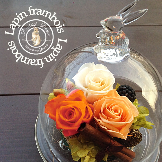 選べる4色♪幸せを願う『幸運のうさぎ〜ラパン・フランボワーズ』プリザーブドフラワー ガラスドーム ギフト 花 誕生日 お祝い 御祝 記念日 結婚 引き出物 縁起物 出産祝い