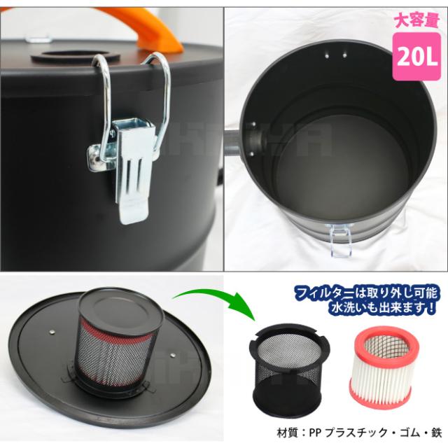 灰クリーナー 20L 大容量 アッシュクリーナー 薪ストーブ メンテナンス 灰フィルター 灰取り 灰掃除 KIKAIYA