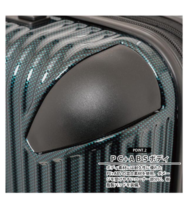 ・ボディ素材には耐久性に優れたPCとABSの混合素材を使用、ダメージを受けやすいコーナー部分に、樹脂製パッドを装備。