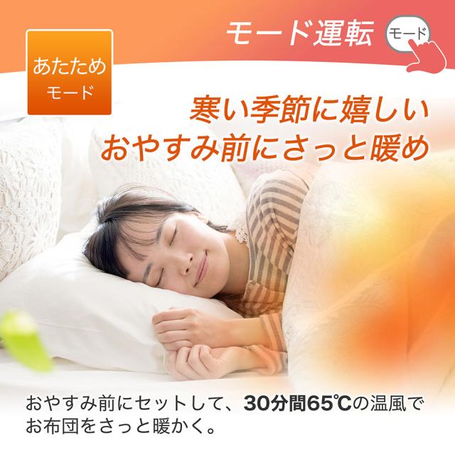 - 今まで使っていた布団乾燥機が壊れて、新しく購入しましたが、こんなに便利になっていて、大変嬉しいです。 なんにでも、使える範囲が広がりました。