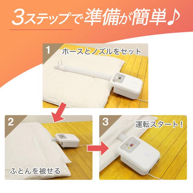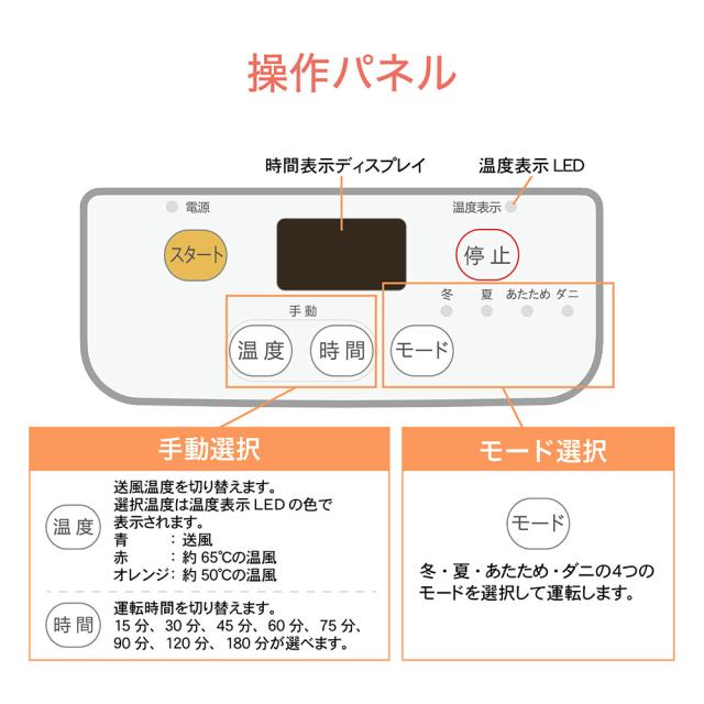 - 商品の配達も早かったし、布団乾燥機の取り扱いも簡単で、布団乾燥機を使ったら、 布団が暖かくて良かったですね、商品の取り扱いも梱包も十分でした、