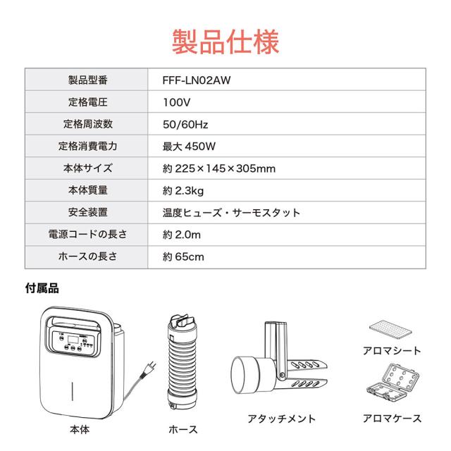 付属品:ホース / アタッチメント / アロマシート / アロマケース / 取扱説明書 兼 保証書
