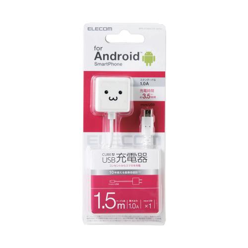 エレコム スマホ用AC充電器 CUBE 1A ケーブル一体 microB 1.5m ホワイト FACE(MPA-ACMAC155WF) メーカー在庫品