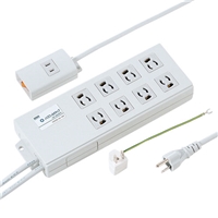 電源ノイズフィルタを内蔵しています。サージ吸収素子を内蔵し、雷サージから接続機器を守ります。抜け止めの差込口ですので、不意のプラグ抜けがなく安心して使用できます。手元でスイッチが入り切りできる便利な手元集中スイッチ付きです。マグネット付きですので、スチール製デスクなどに仮固定が可能です。便利な一括集中スイッチ付きです。プラグは3P(接地付き)プラグで3P−2P変換アダプタ付き仕様です。アース接続ができる、アース端子付きです。仮固定することができるフック穴付きです。
