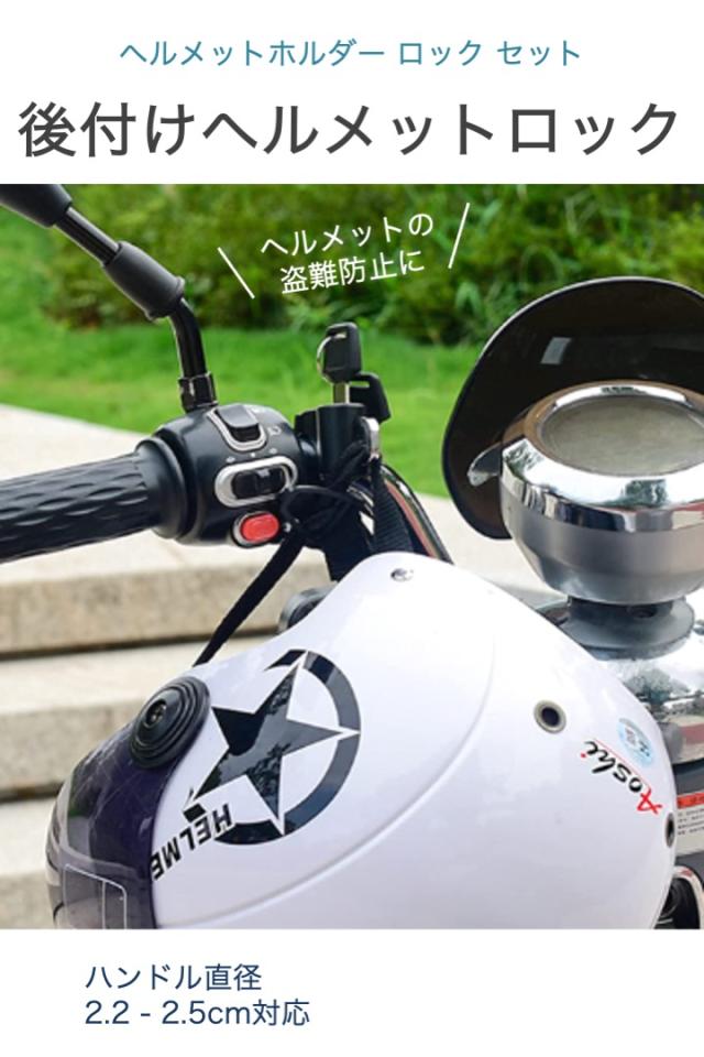 ヘルメットホルダー ロック バイク 防犯 固定 フック ヘルメットロック 盗難防止 外付け 後付け 配達 ウーバーイーツ 出前 フードデリバリー 自転車 ロードバイク 鍵 キーロック 直径22cm ツーリング フレーム キャリア 取り付け シンプル 簡単