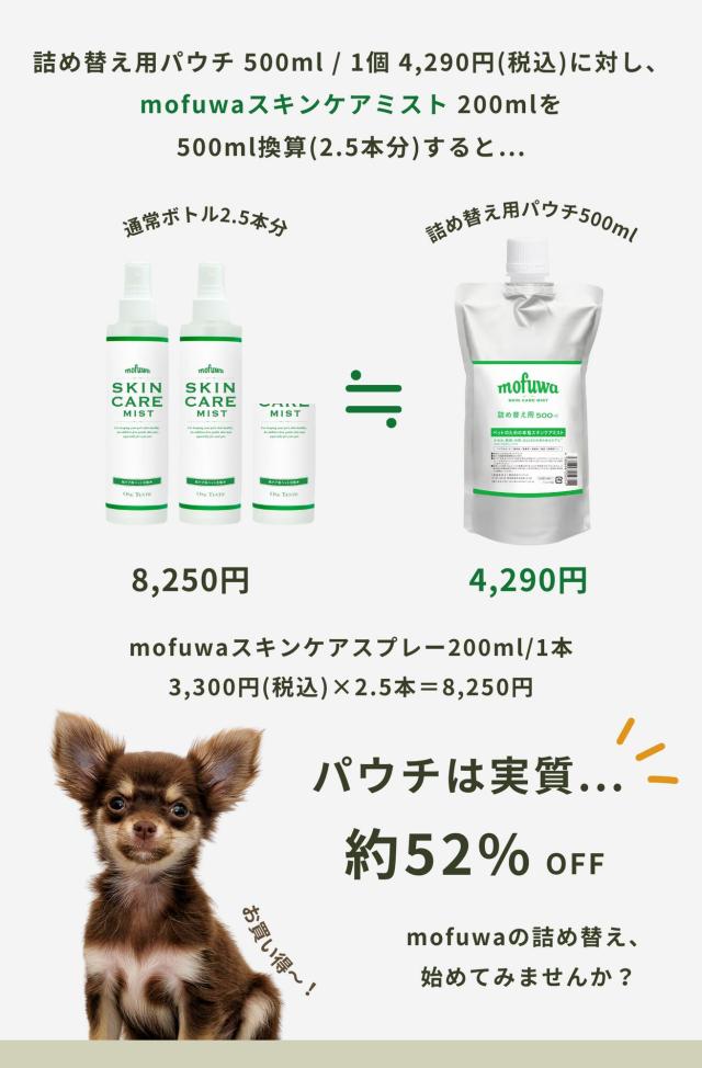 公式 mofuwa スキンケアミスト スプレー 500ml 詰替え用 犬 猫 涙やけ モフワ もふわ かゆ 目 乾燥 耳 お口 カイカイ かゆみ フケ 目やけ 耳ダレ 保湿 ペット 消臭 除菌 痒み 止め 対策 ニオイ アイケア 無香料 ノンアルコール