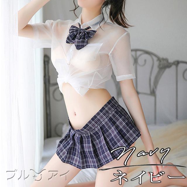 制服 コスプレ 女子高生 セット セクシー コスチューム ブレザー 半袖 フリーサイズ 紺 シースルー jk コス 大人 レディース 衣装 仮装