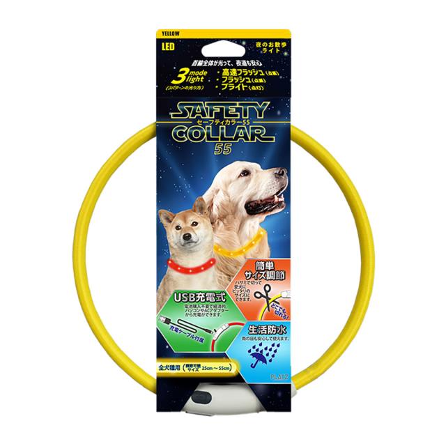 プラッツ セーフティカラー55 イエロー ■ 充電式 LED お散歩ライト 首輪 リード 犬用品