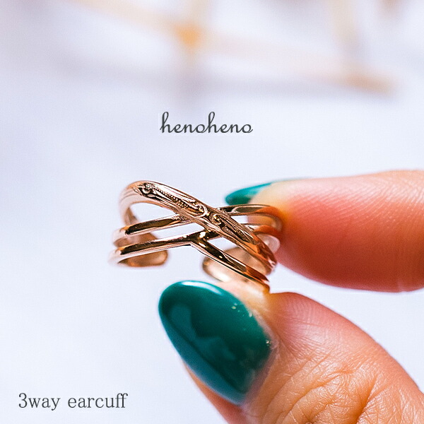ハワイアンジュエリー イヤーカフ 3way カフリング 立体 幅広 片耳販売 交差 クロス 指輪 リング レディース サージカルステンレス イヤカフ 耳 軟骨 挟む 3連 メンズ 金属アレルギー イヤリング 男女兼用 henoheno ブランド ハワイアン