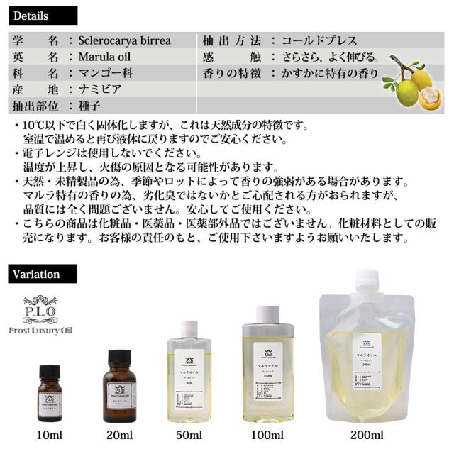 オーガニック PROST Luxury Oil 未精製マルラオイル 50ml キャリアオイル