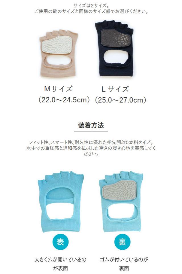 素足感覚を実現する軽さと、動きを軽くする水中歩行に適したサポータです。 アクアビクス等、様々な水中エクササイズにもお勧めです。