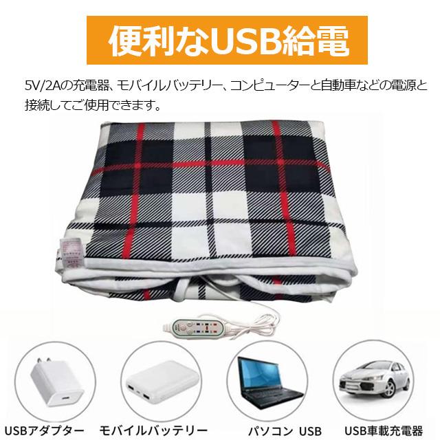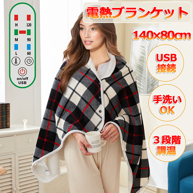 電気毛布 USBブランケット 電熱ブランケット ホットカーペット 3段階の温度調整 膝掛け 肩掛け 肩毛布 140×80cm ウェアラブル電気毛布 洗える アウトドア テント泊用