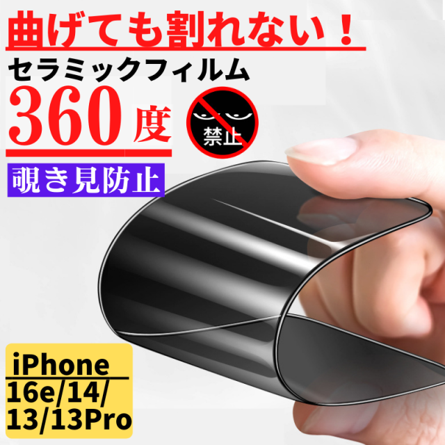 iPhone 16e 14 13 13Pro セラミック 360度 アンチグレア 覗き見防止 フィルム 割れない 非光沢 サラサラ 反射防止 マット 指紋防止 硬度9H 全面保護 フルカバー のぞき見防止 iphone アイフォン iPhone16e iPhone14 iPhone 13 13プロ