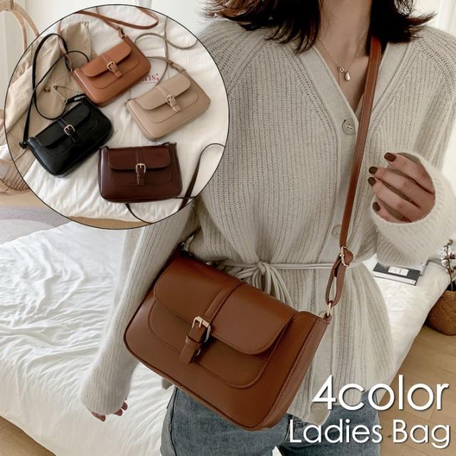 ショルダーバッグ 肩掛け 斜め掛け レディース 女性 鞄 フェイクレザー レザー調 ファスナー マグネットボタン シンプル きれ