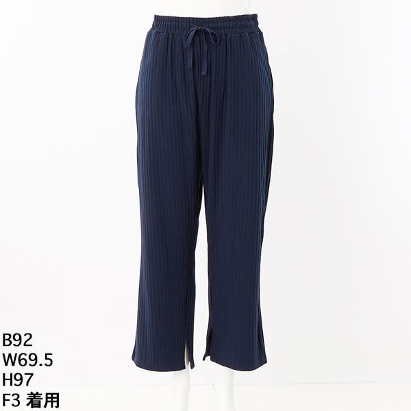 【大きいサイズレディース】裾スリットリブワイドパンツ