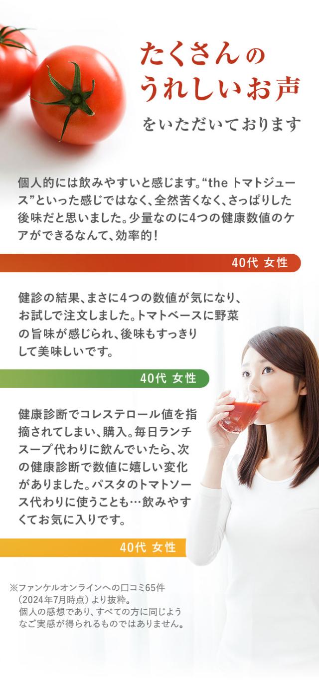- トマトベースの野菜ジュースで飲みやすいです 野菜ジュースをストックするより場所も取らなくていいかな と思います 色々気になる年齢なので血圧が気になる友人にもお裾分けしました。