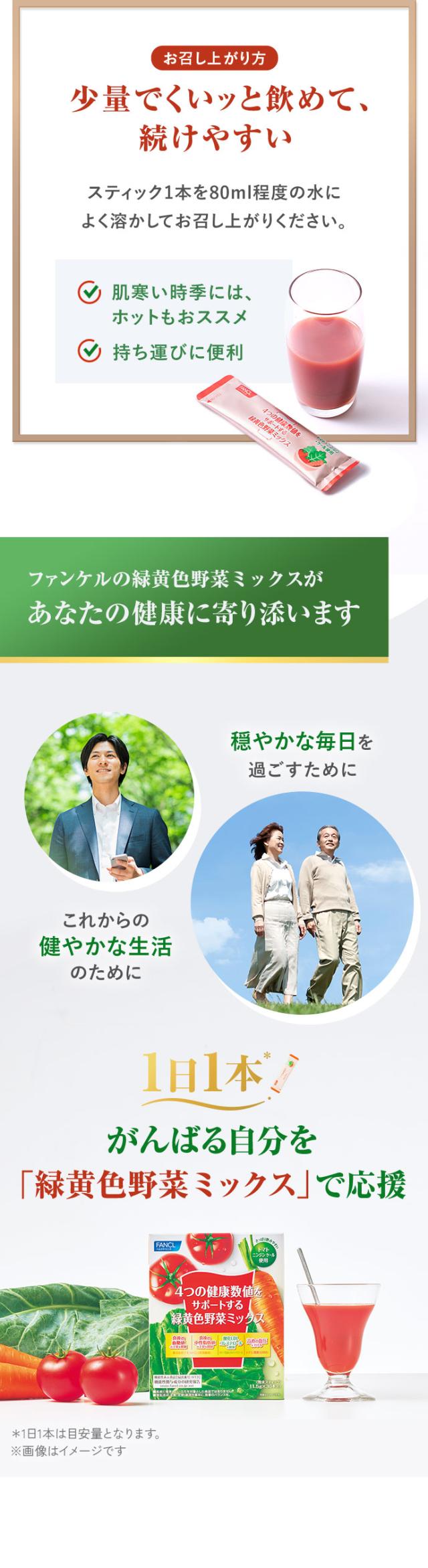 4つの健康数値をサポートする緑黄色野菜ミックス<機能性表示食品> 90本入り 【ファンケル 公式】 [FANCL 青汁 ケール 健康 健康診断 数値 健康数値 健康食品 食物繊維 血糖値 中性脂肪 LDLコレステロール 血圧 トマトジュース 飲みやすい 溶けやすい トマト 送料無料]