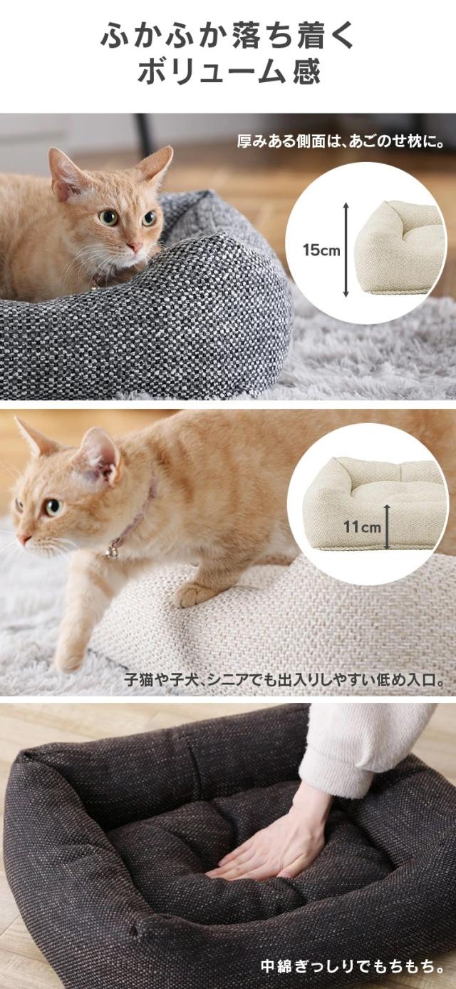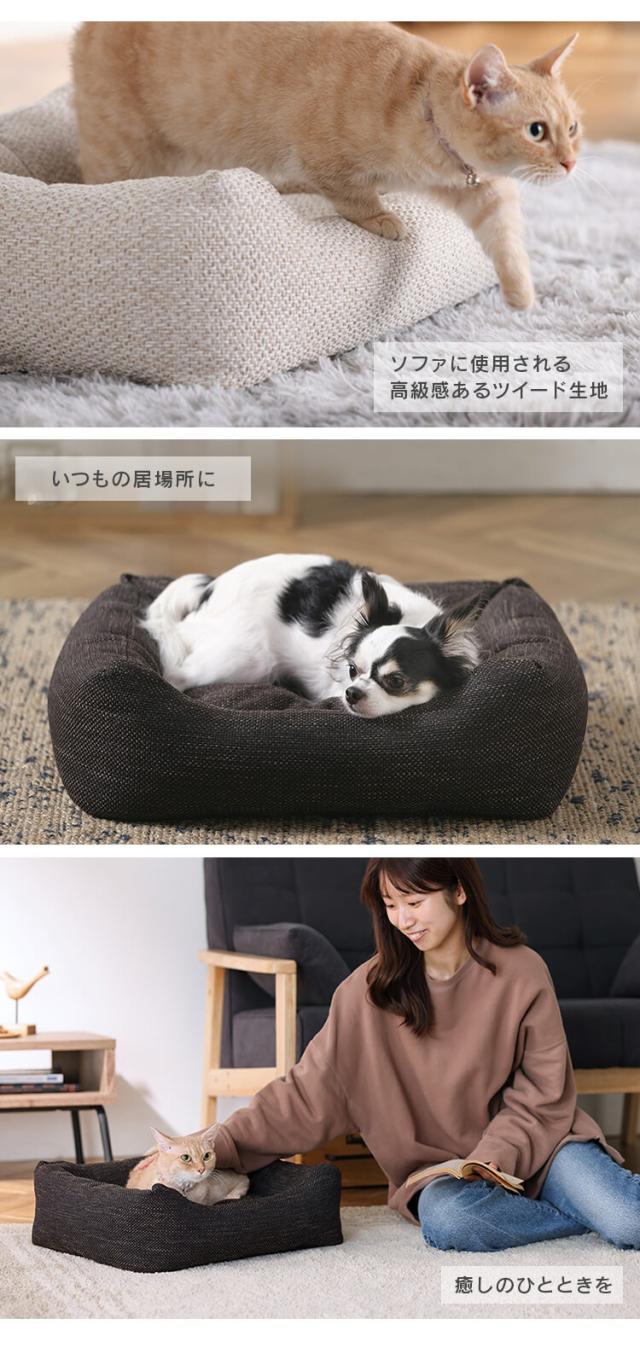 犬用ベッド 猫 ベッド スクエア ツイード生地 手洗い可 清潔 滑り止め付 あごのせ枕 ペットベッド ペットクッション 小型犬ベッド ペットソファー 犬ソファー 猫ソファー ふかふか 低め入口 ツイードスタイルベッド アイリスオーヤマ P-TB530 *