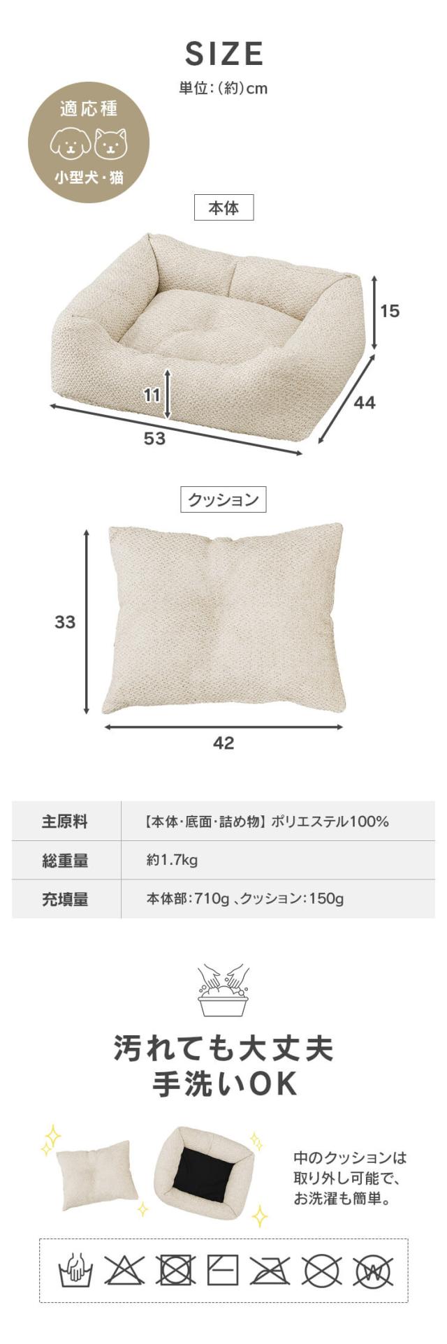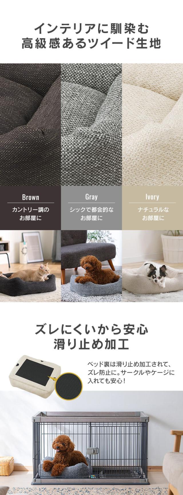 ベッド裏は滑り止め加工がされているのでズレにくく、サークルやケージに入れてもOK。