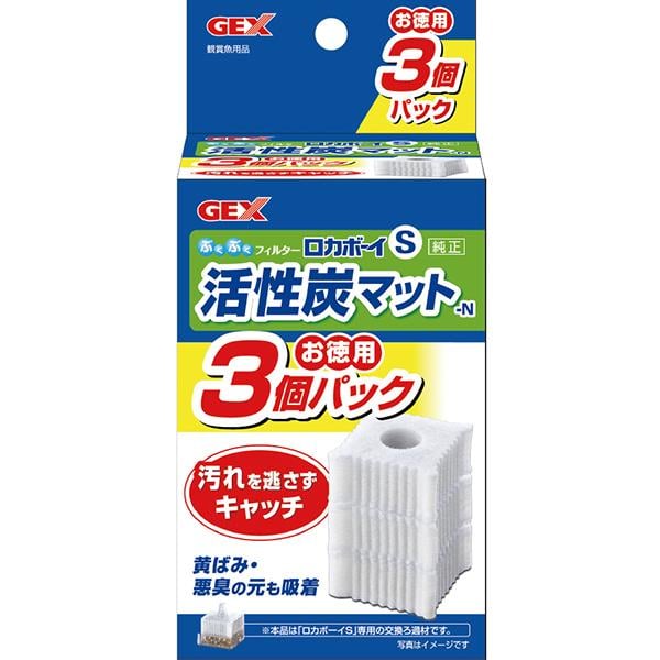 目詰まりしにくいマットの中に活性炭を配合したロカボーイ専用交換ろ過材のお徳用3個パック。