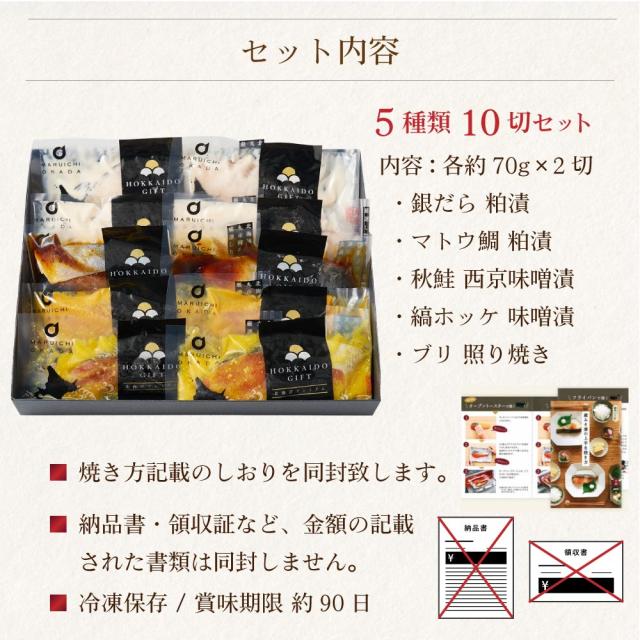 海鮮 ギフト セット 北海道 漬魚ギフトセット 5種類 10切 銀だら マトウ鯛 秋鮭 縞ホッケ ブリ 粕漬 西京漬け 味噌漬け 照り焼き 個分け プレゼント グルメ バレンタイン 冬ギフト