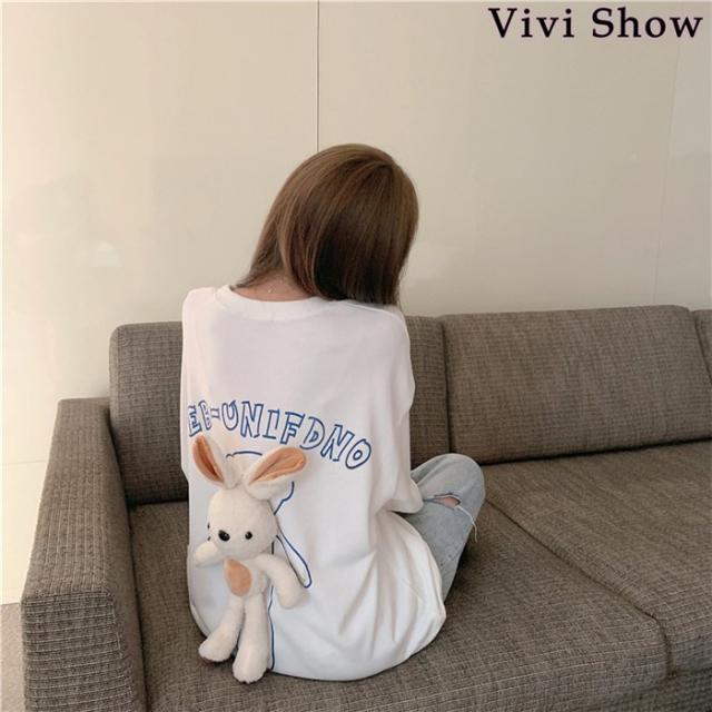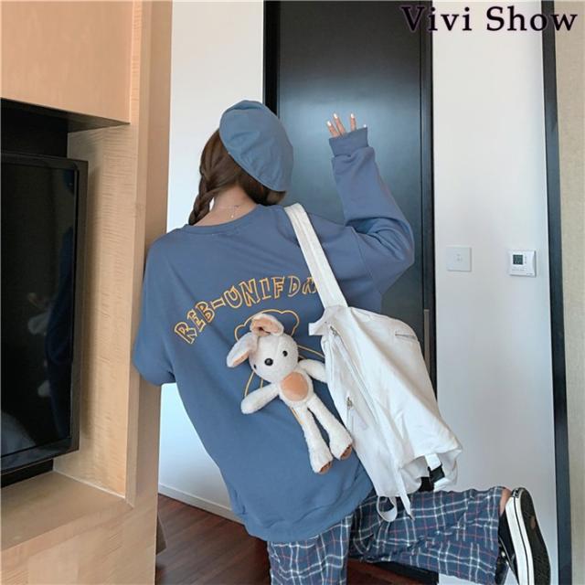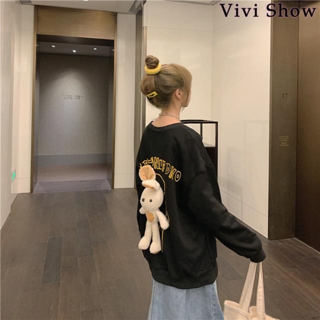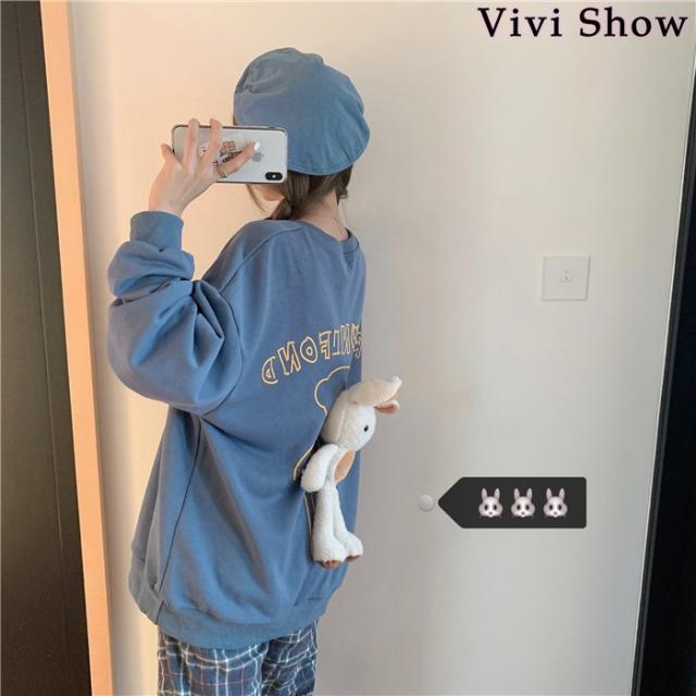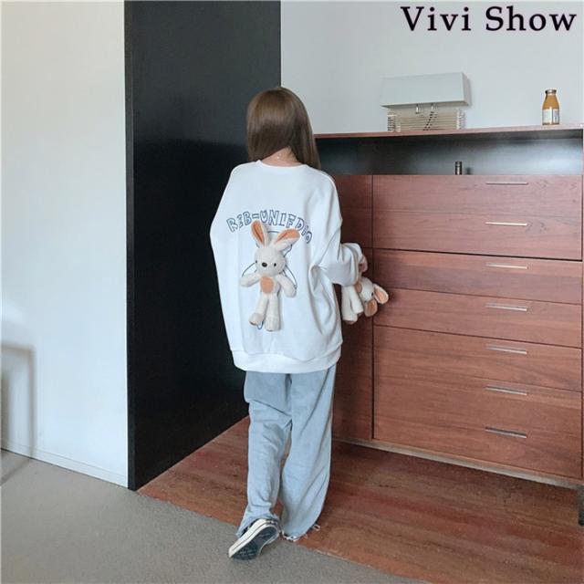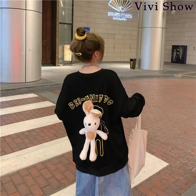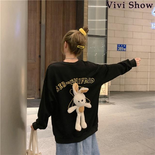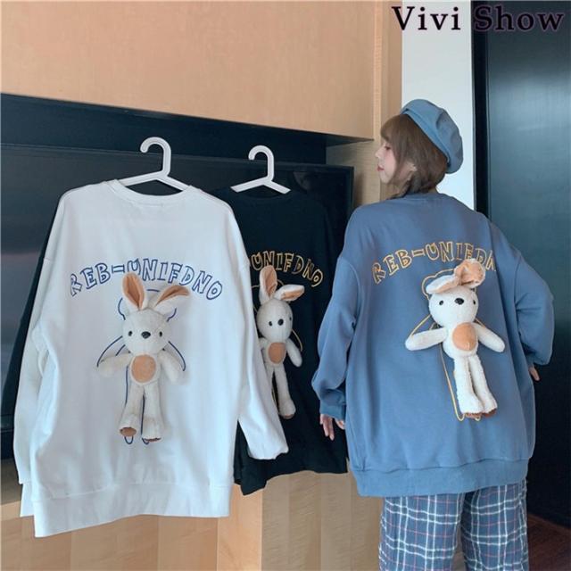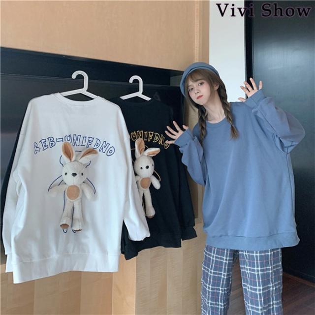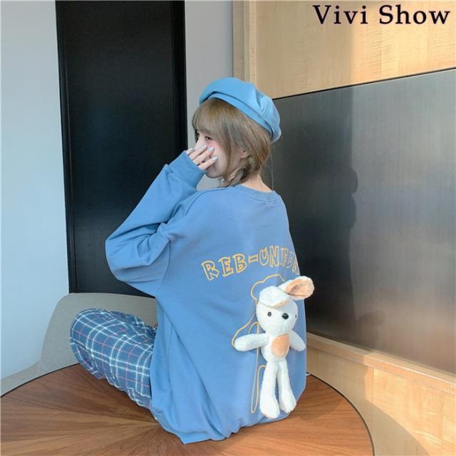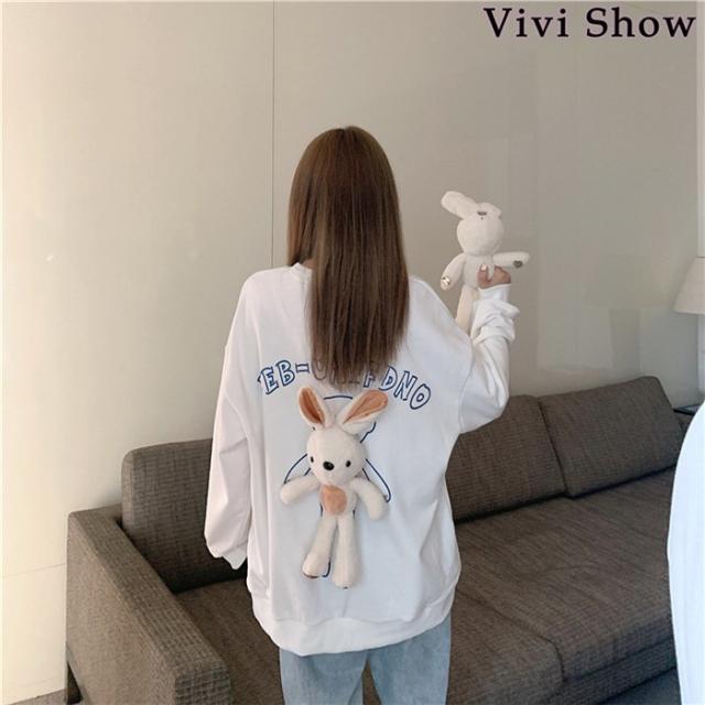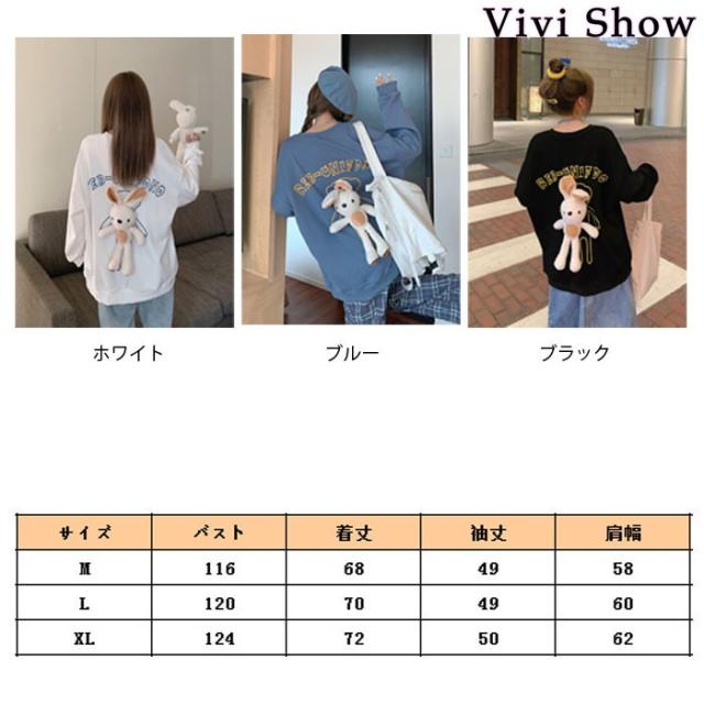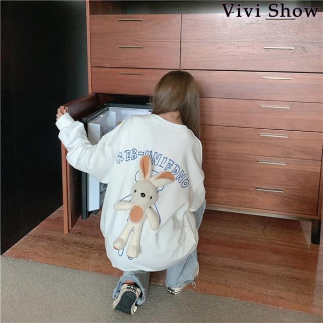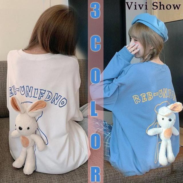 レディース 長袖 トレーナー うさぎ ぬいぐるみ トップス チュニック丈 体型カバー プルオーバー vivishow