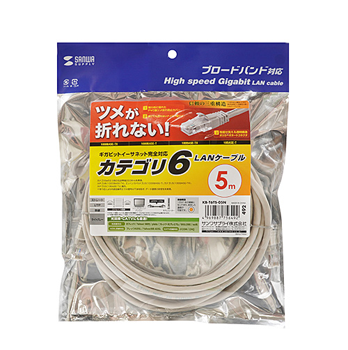 ツメが折れない三重構造コネクタ採用、ギガビットイーサネット完全対応カテゴリ6LANケーブル