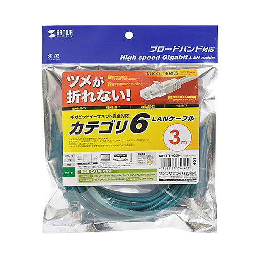 サンワサプライ KB-T6TS-03GN つめ折れ防止カテゴリ6LANケーブル 取り寄せ商品