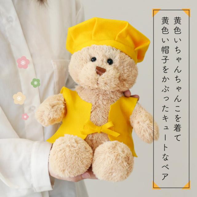 \ 黄色のちゃんちゃんこ着てちょこん / 傘寿 米寿祝い のちゃんちゃんこを着た クマのぬいぐるみ でかわいくお祝いしませんか? オリジナル 木札に メッセージ お名前を入れられます♪